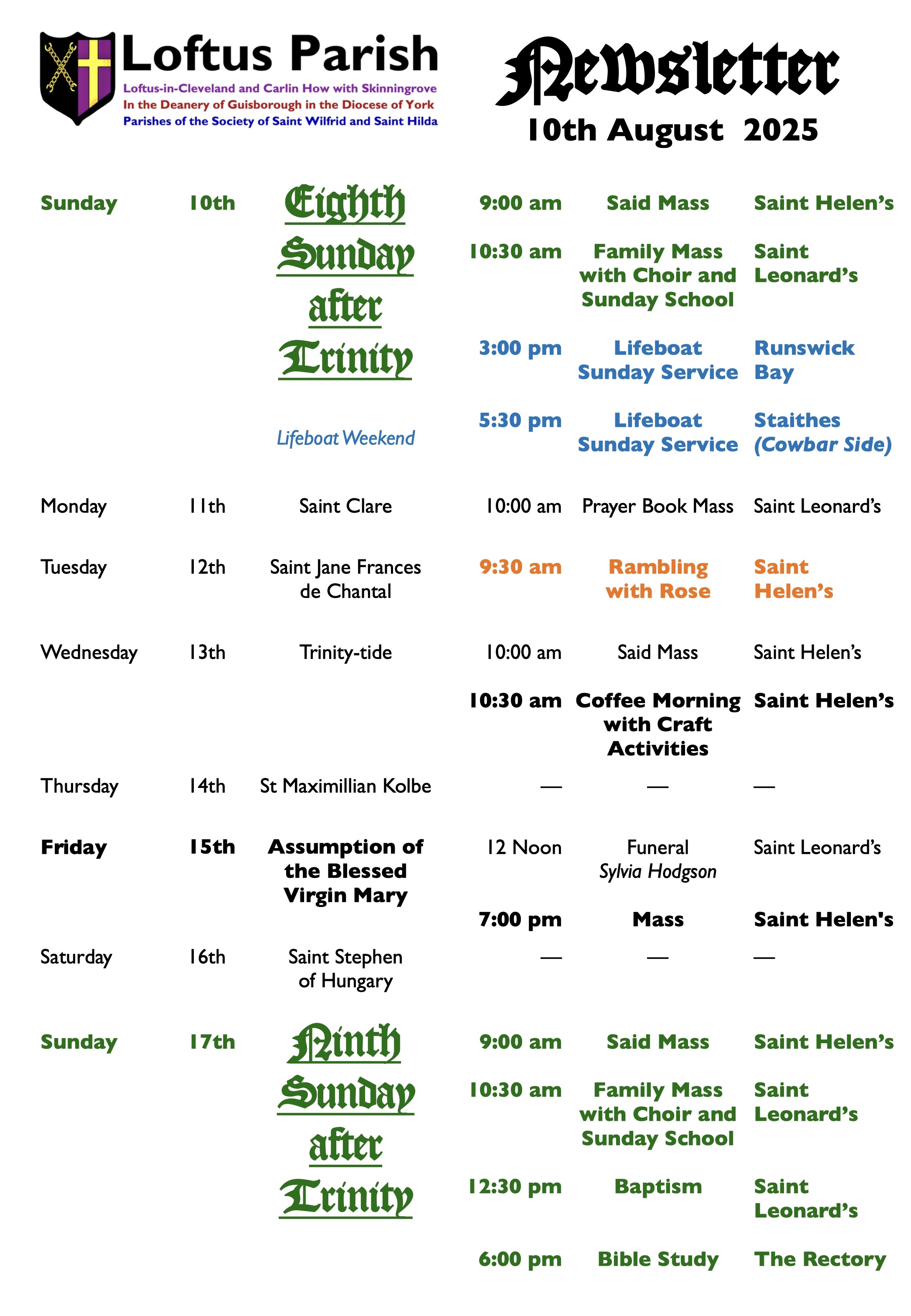 Newsletter – Eighth Sunday of Trinity 2025 August 9, 2025 News Share this:Click to share on Twitter (Opens in new window)Click to share on Facebook (Opens in new window) Related