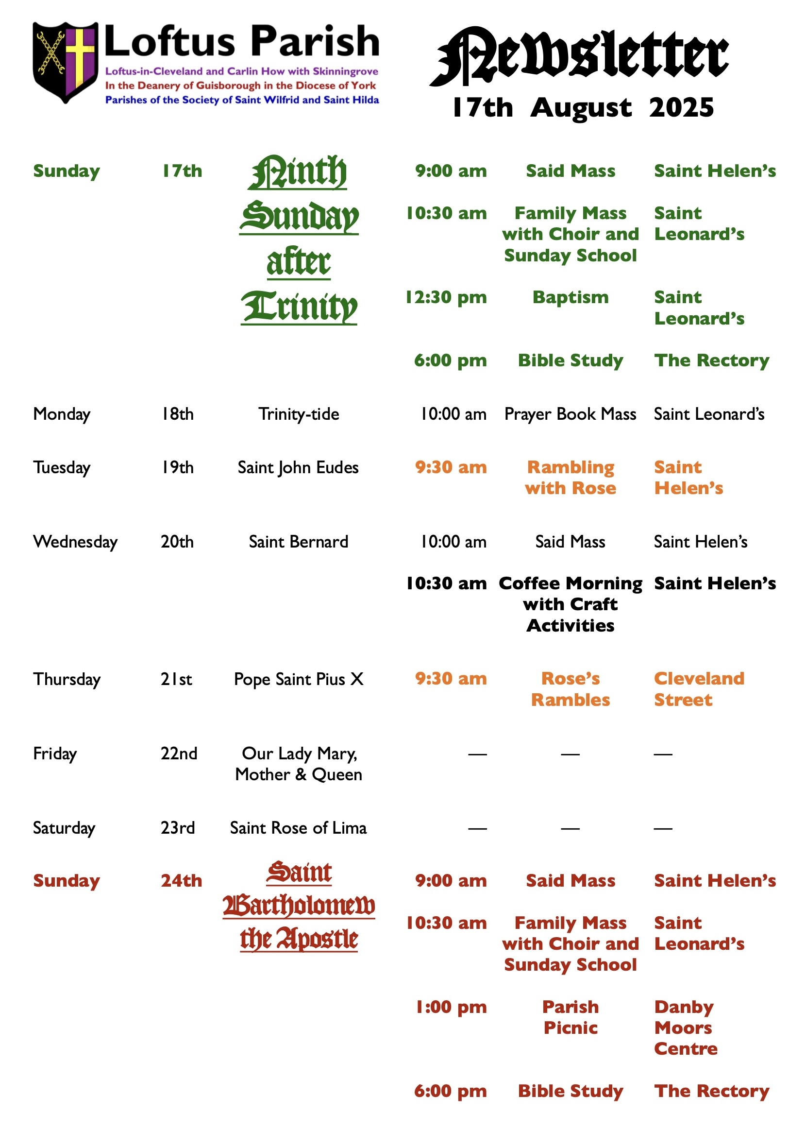 Newsletter – Ninth Sunday after Trinity 2025 August 16, 2025 News Share this:Click to share on Twitter (Opens in new window)Click to share on Facebook (Opens in new window) Related