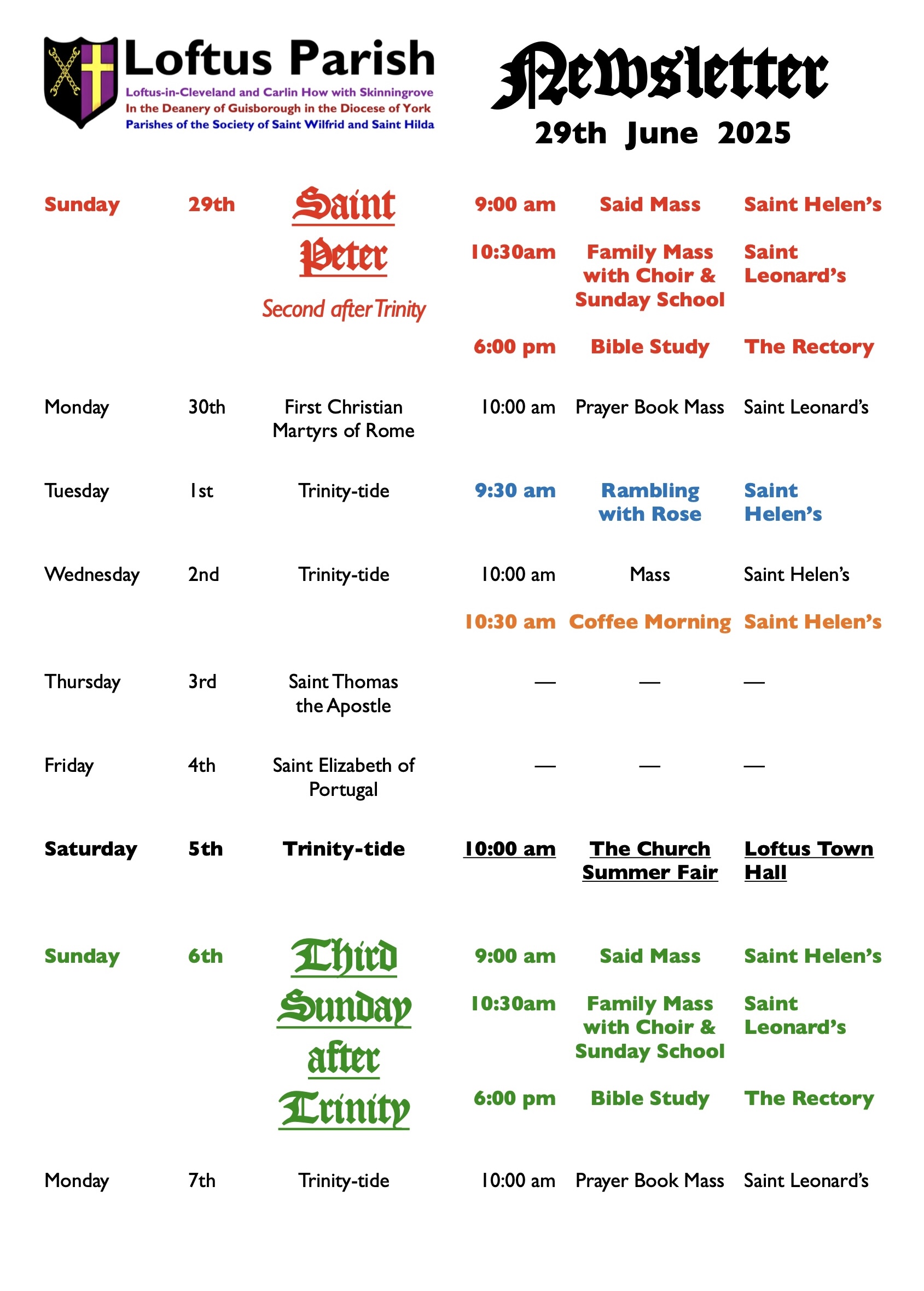 Newsletter – Saint Peter’s Day 2025 June 28, 2025 News Share this:Click to share on Twitter (Opens in new window)Click to share on Facebook (Opens in new window) Related
