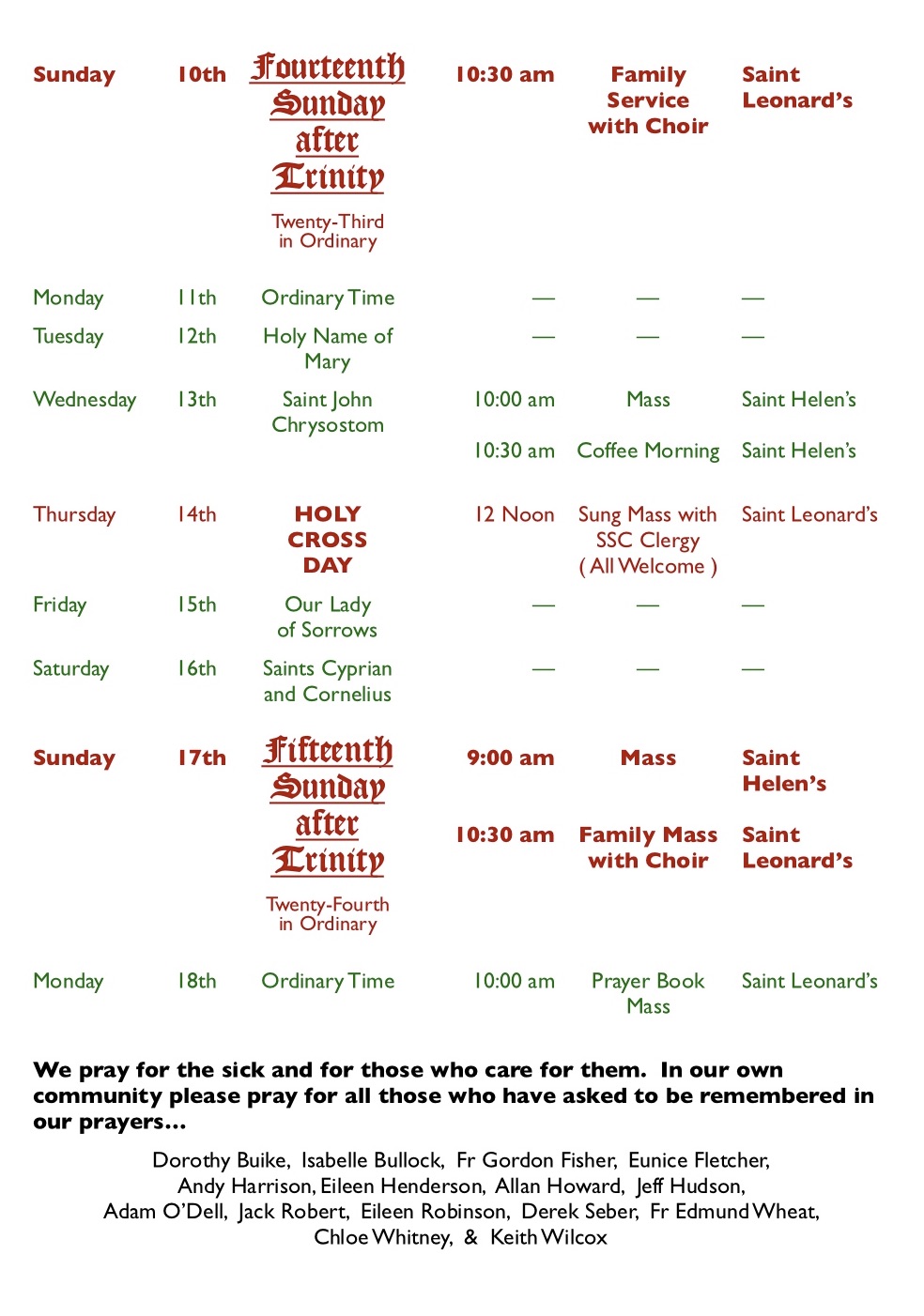 Newsletter – Trinity XII 2023 August 26, 2023 News Share this:Click to share on Twitter (Opens in new window)Click to share on Facebook (Opens in new window) Related