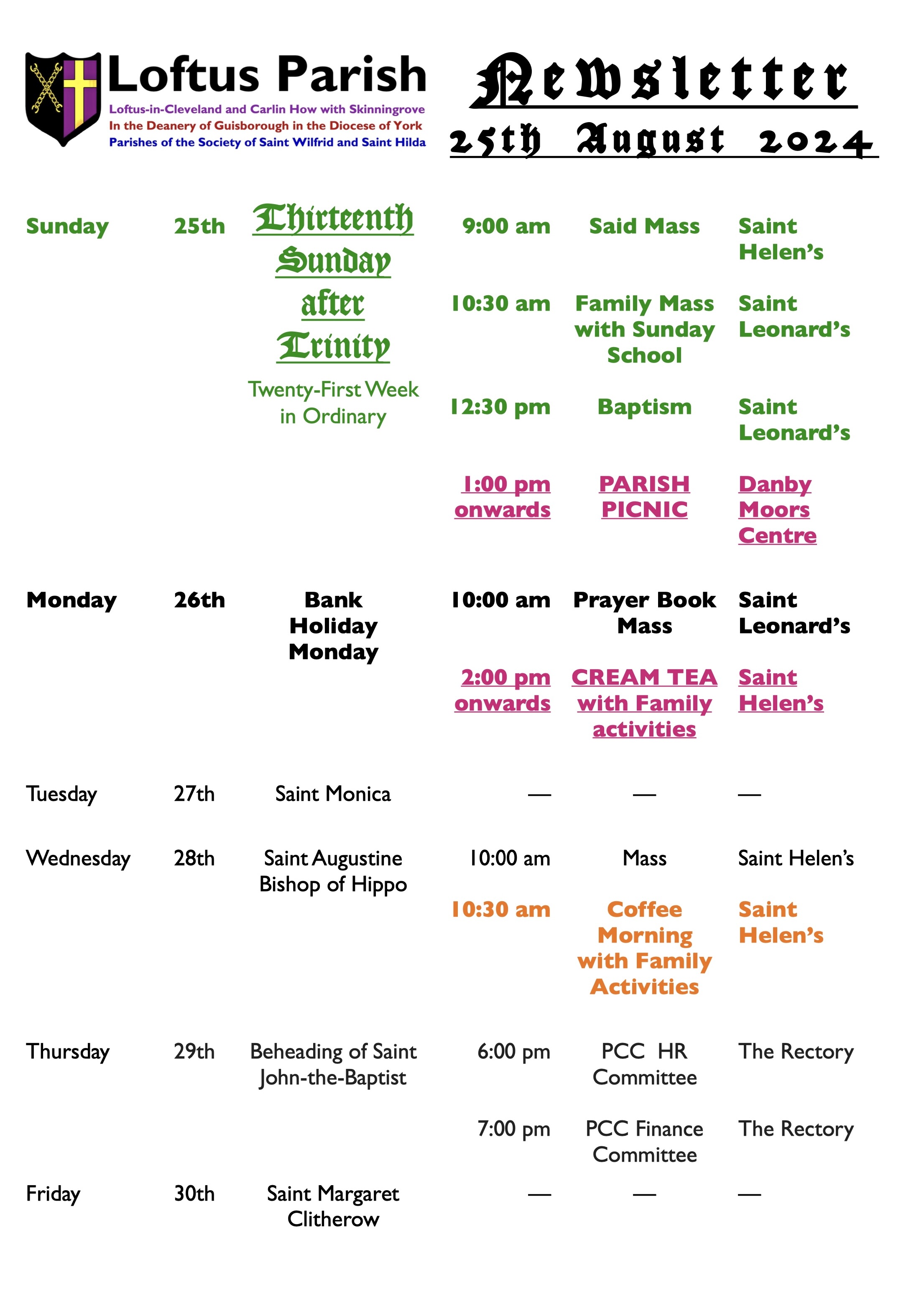 Newsletter – Trinity XIII 2024 August 24, 2024 News Share this:Click to share on Twitter (Opens in new window)Click to share on Facebook (Opens in new window) Related