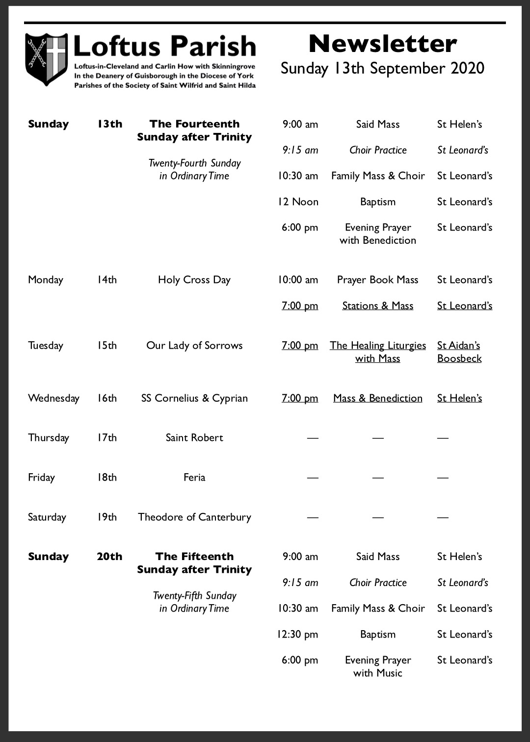 Newsletter – Trinity XIV 2020 September 12, 2020 News Share this:Click to share on Twitter (Opens in new window)Click to share on Facebook (Opens in new window) Related