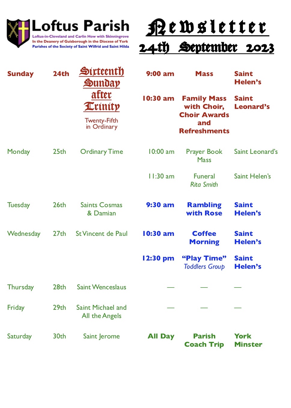 Newsletter – Trinity XVI 2023 September 23, 2023 News Share this:Click to share on Twitter (Opens in new window)Click to share on Facebook (Opens in new window) Related